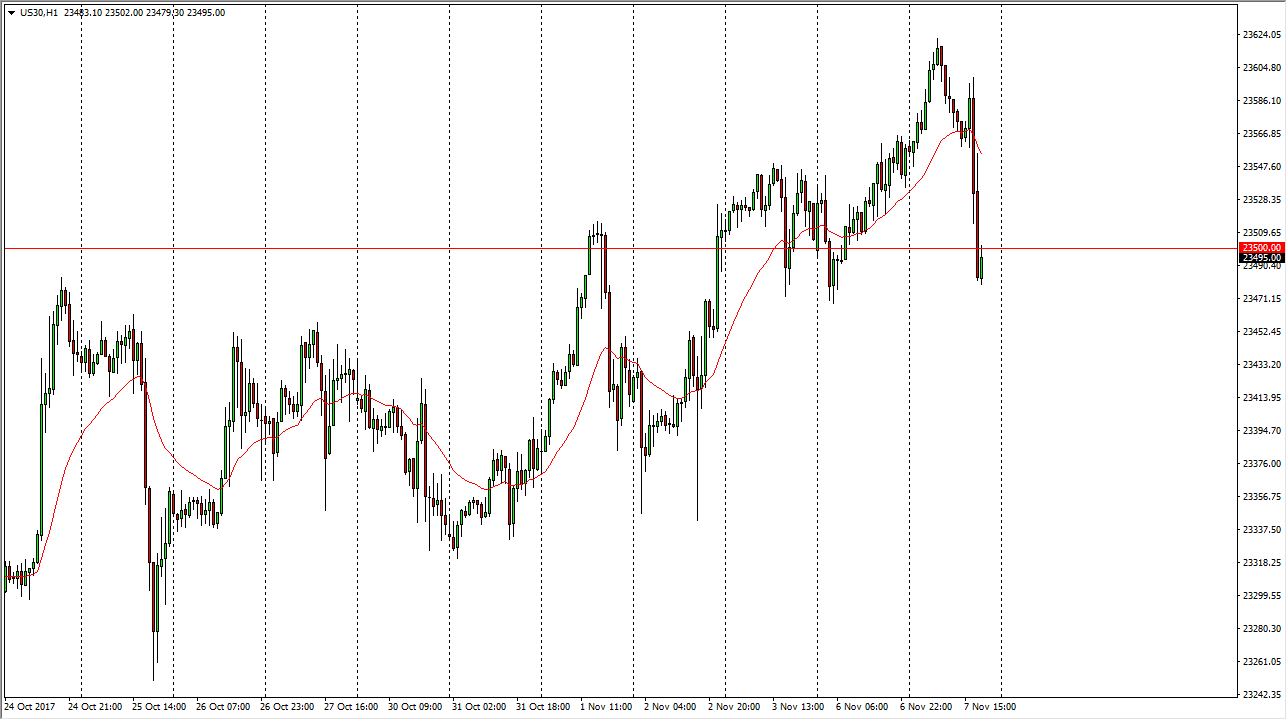 Dow Jones 30 The Dow Jones 30 fell significantly during the day on Tuesday, breaking below the 23,500 handle. This is an area that should be supportive,