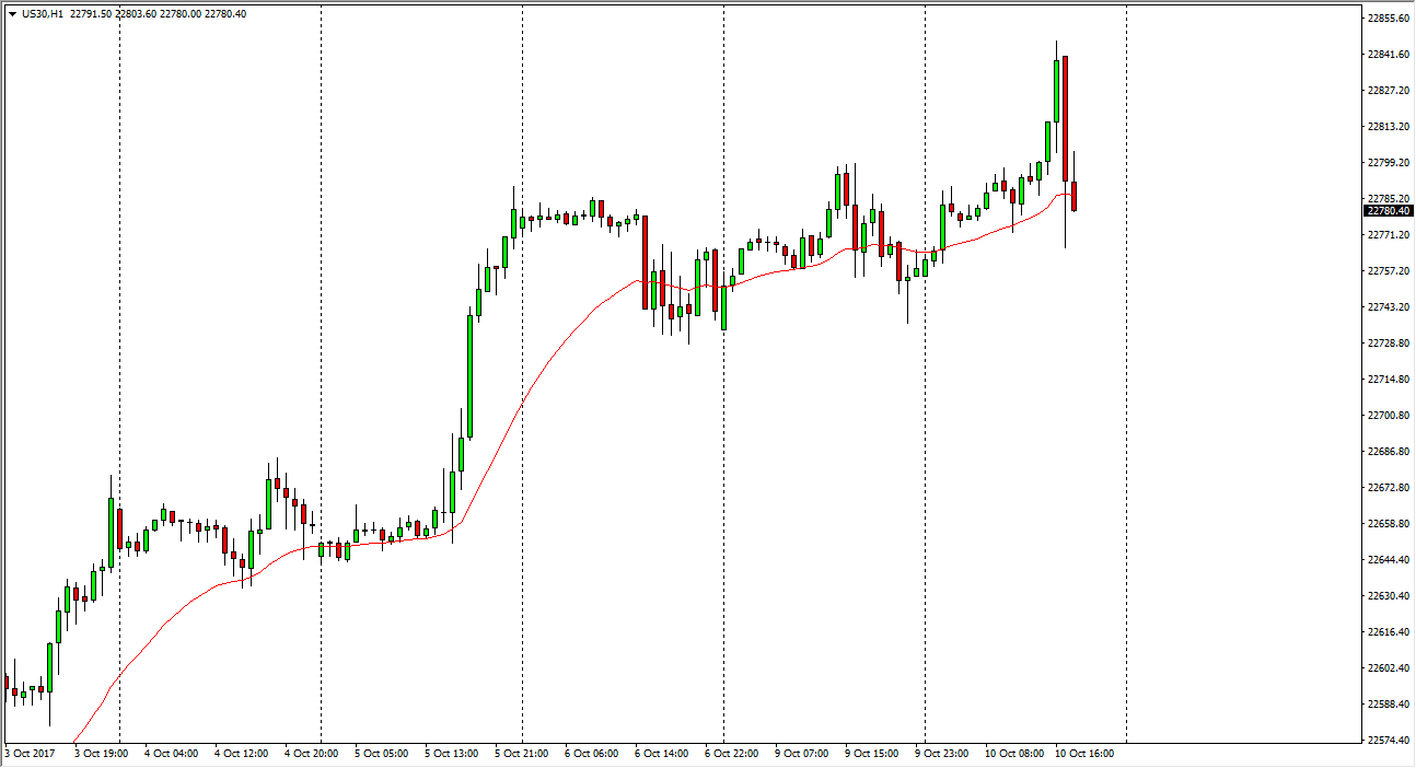 The Dow Jones 30 initially tried to rally during the day on Tuesday but rolled over to test the 22,750 level. I believe that given enough time there is plenty of buying opportunities below, perhaps reaching towards the 22,850 level again. I think that the 24-hour exponential moving average should continue to find buyers attracted to it as well, as the Dow Jones 30 is attracting more money as money continues to go into industrials and financials both. Because of this, I think the Dow Jones 30 will continue to see plenty of opportunities to go higher. I don’t have any interest in shorting, the Dow Jones 30 is one of the more important indices that I am following right now, and probably one of the more reliable. I think stability will lead the way going forward in the rally.