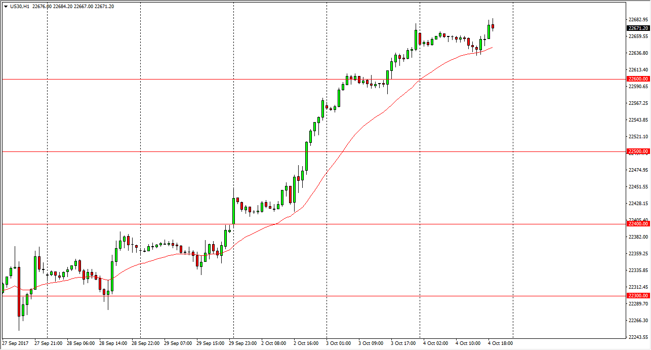 The Dow Jones 30 went sideways initially during the Wednesday trading session, as we continue to see strength just below. The 24-hour exponential moving average has offered support on the hourly chart, and although we have drifted sideways more than anything else, I think that it’s only a matter of time before the buyers return. I look at the 22,600 level as a bit of support now. We have seen a recent move from tech stocks to the overall industrial sector, and that of course will help the Dow Jones 30. However, this day was probably more about building out confidence than anything else, and the sideways session certainly help and stability to a market that rallied far too quickly for the likes of some traders. Given enough time though, I think we’re going towards the 23,000 level over the next several weeks.