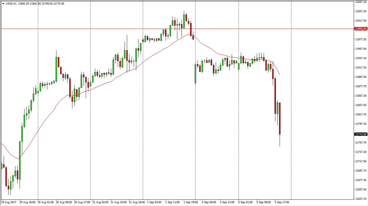 Dow Jones 30 The Dow Jones 30 initially went sideways on Tuesday, but then fell from a cliff and broke down. Ultimately, I think that the market should