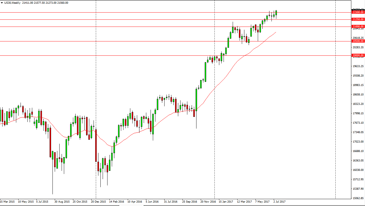 The Dow Jones 30 initially fell during the week but found enough support near the 21,250 level to turn things around and break above the 21,500 level. Now that we have broken above there, I believe that the Dow Jones 30 is ready to go higher, and therefore short-term pullbacks are probably going to be buying opportunities. Buy-and-hold traders are most certainly going to be involved as well, and I now think that the Dow Jones 30 will go looking towards the 21,750-level next, with an eye on the 22,000 level. I have no interest in shorting this market, I believe that the buyers are very much in control.
