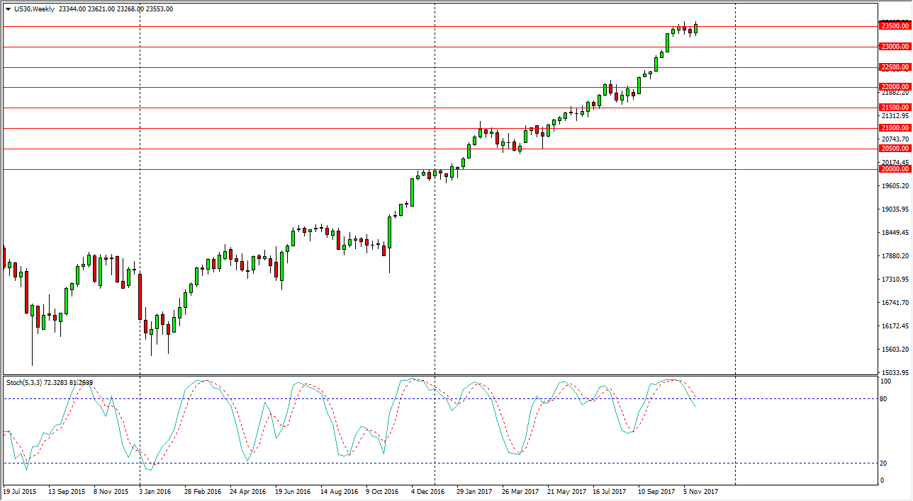 The Dow Jones 30 broke higher during the course of the week, reaching towards a fresh new high. Pullbacks should continue to offer value, and I believe that the 23,250 level should offer support. Longer-term, I believe that if we can stay above the 22,000 level, the market should continue to go higher and remain in a longer-term uptrend. I believe that given enough time, we should go to the 25,000 handle, as the money keeps flowing into this marketplace, and is very likely that algorithmic traders will be attracted to dips. With any luck, the market should reach 25,000 rather quickly, as although the Federal Reserve looks likely to raise interest rates, it’s likely that the market has already priced this in and is not concerned.