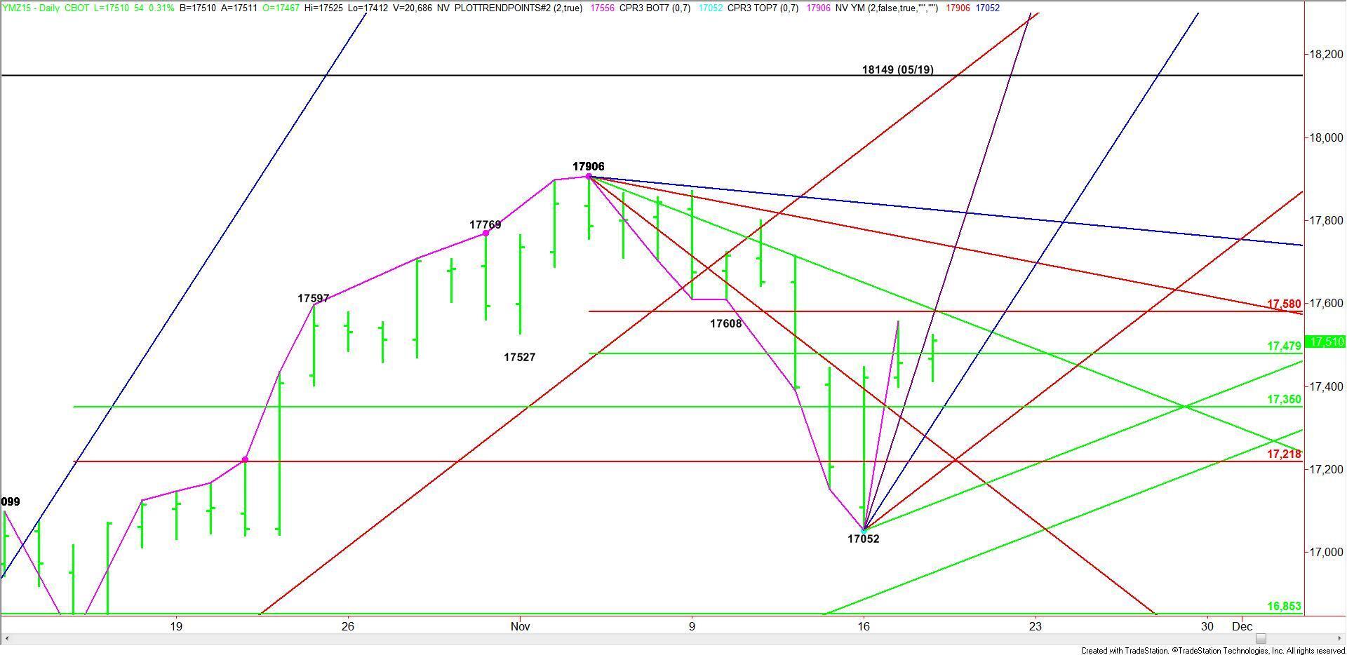 Based on Tuesday’s close at 17456, the direction of the market is likely to be determined by trader reaction to the 50% level at 17479.