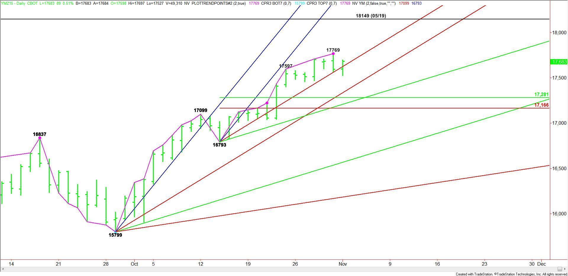 December E-mini Dow Jones Industrial Average futures are trading higher after early session weakness confirmed Friday’s potentially bearish closing price