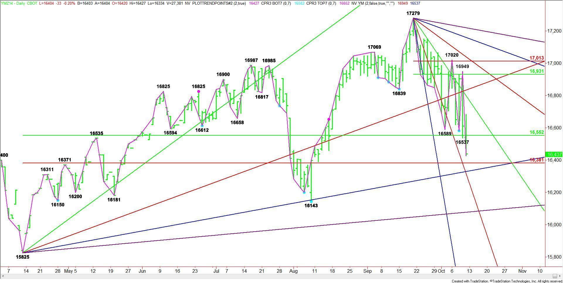December E-mini Dow Jones Industrial Average futures closed in a weak position on Friday, suggesting the selling pressure will continue on Monday.
