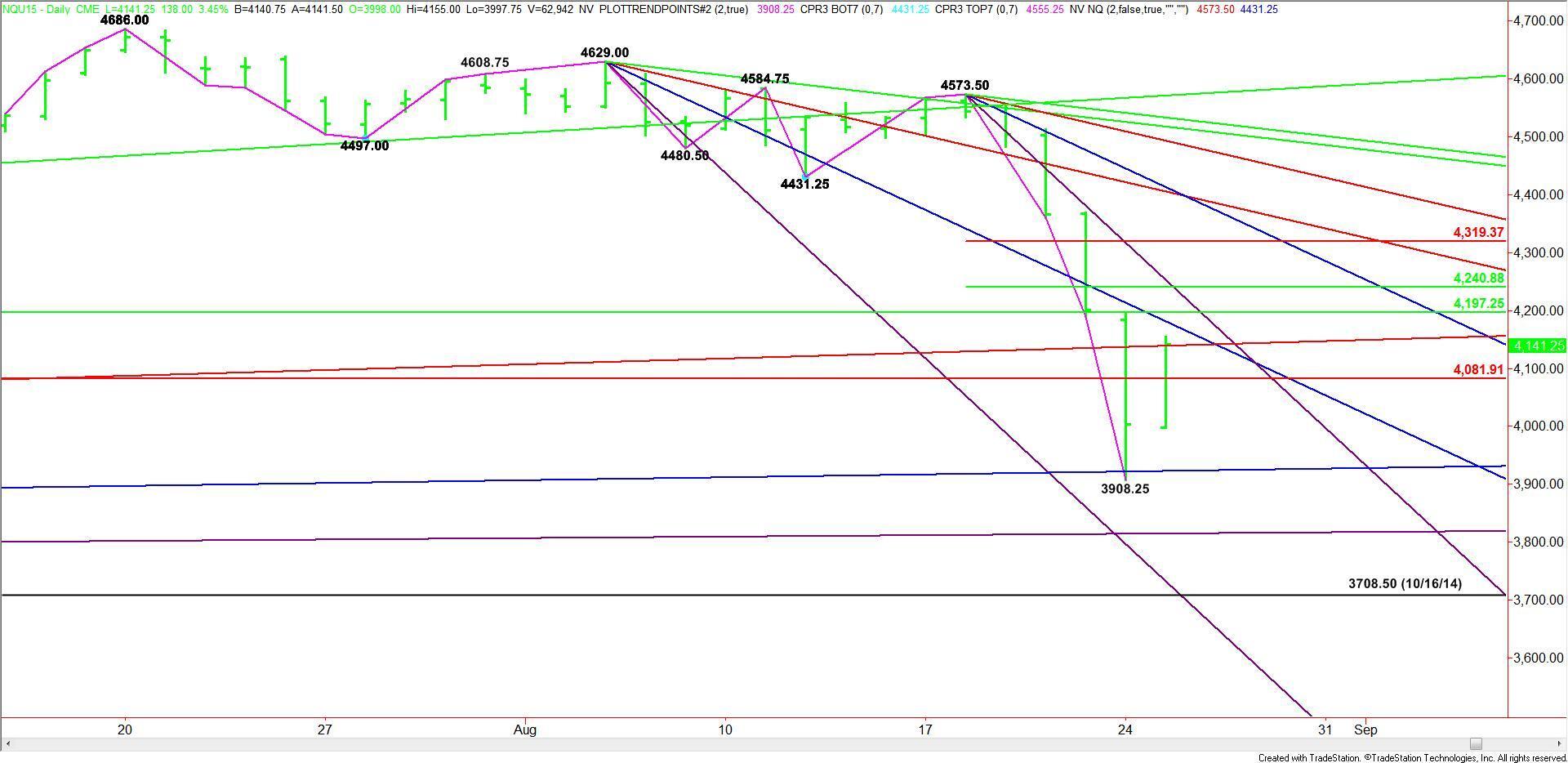 September E-mini NASDAQ-100 Index futures are trading better during the pre-market session after Monday’s massive sell-off. Oversold technical conditions