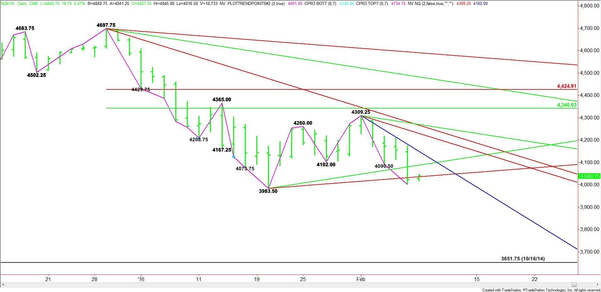 Based on Friday’s close at 4022.00, the direction of the market today is likely to be determined by trader reaction to the uptrending angle at 4035.50.