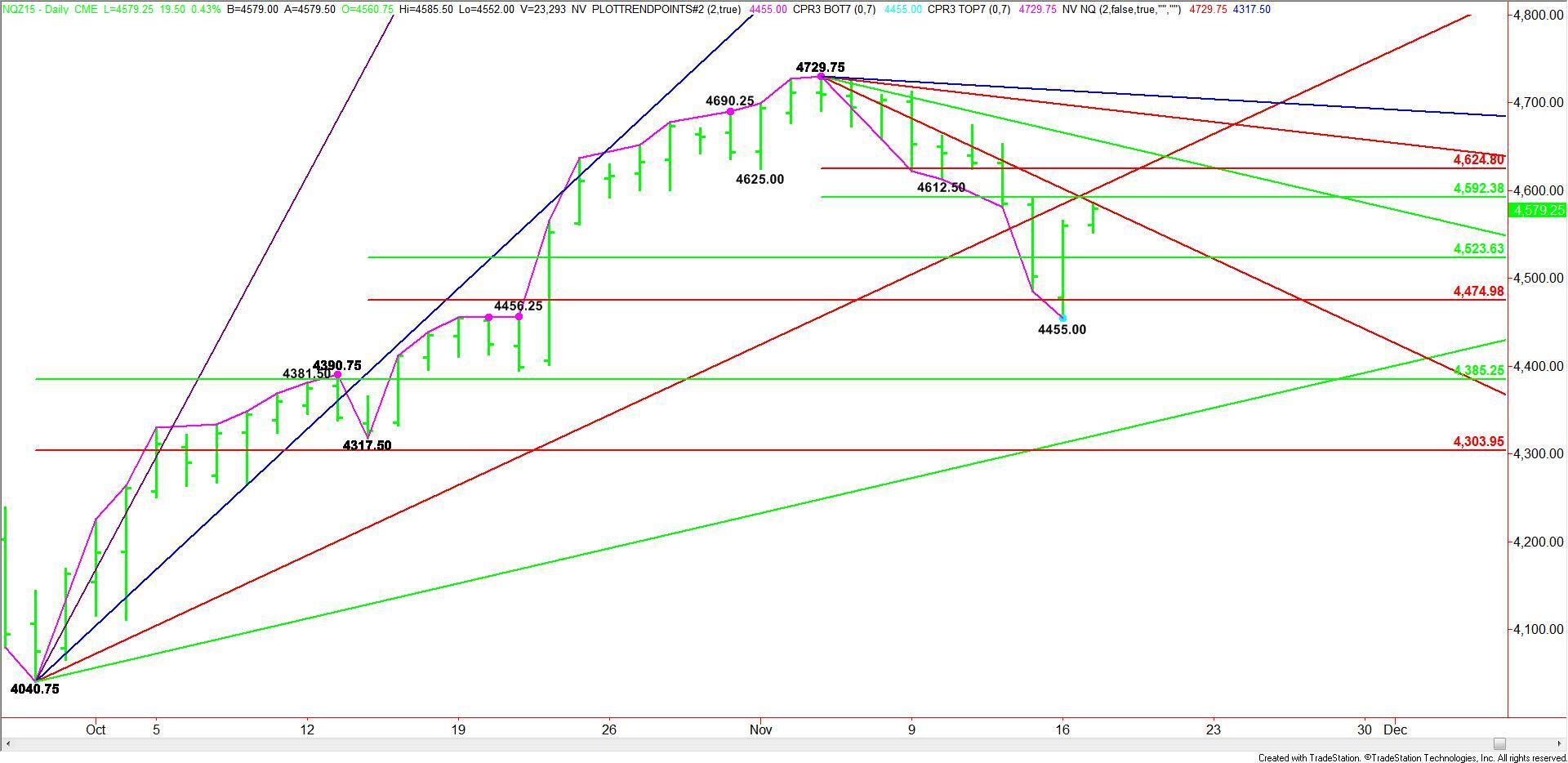 December E-mini NASDAQ-100 Index futures followed through to the upside earlier in the session, confirming yesterday’s closing price reversal bottom.