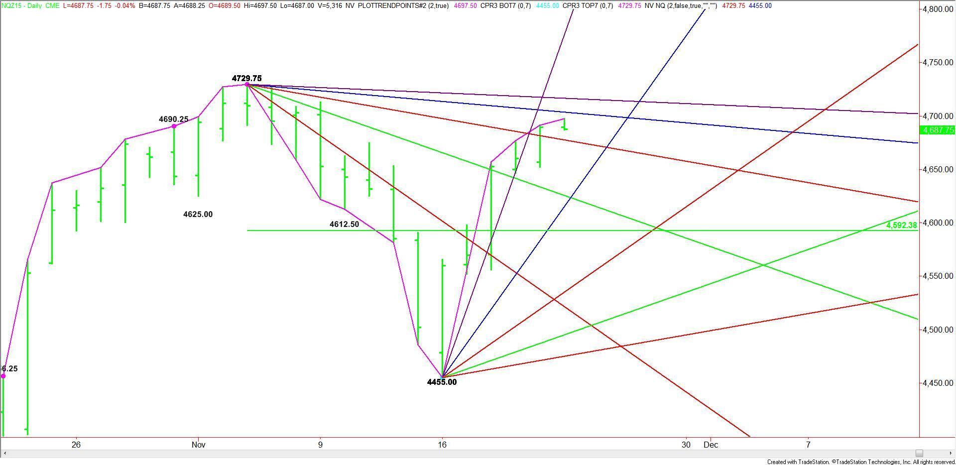 Today’s session begins with the index up 5 days from the 4455.00 main bottom. This give it 2 to 5 days before it enters the window of time for a potential rally-killing closing price reversal top. However, investors should still watch for this pattern especially if a rally over 4729.75 fails to attract fresh money.