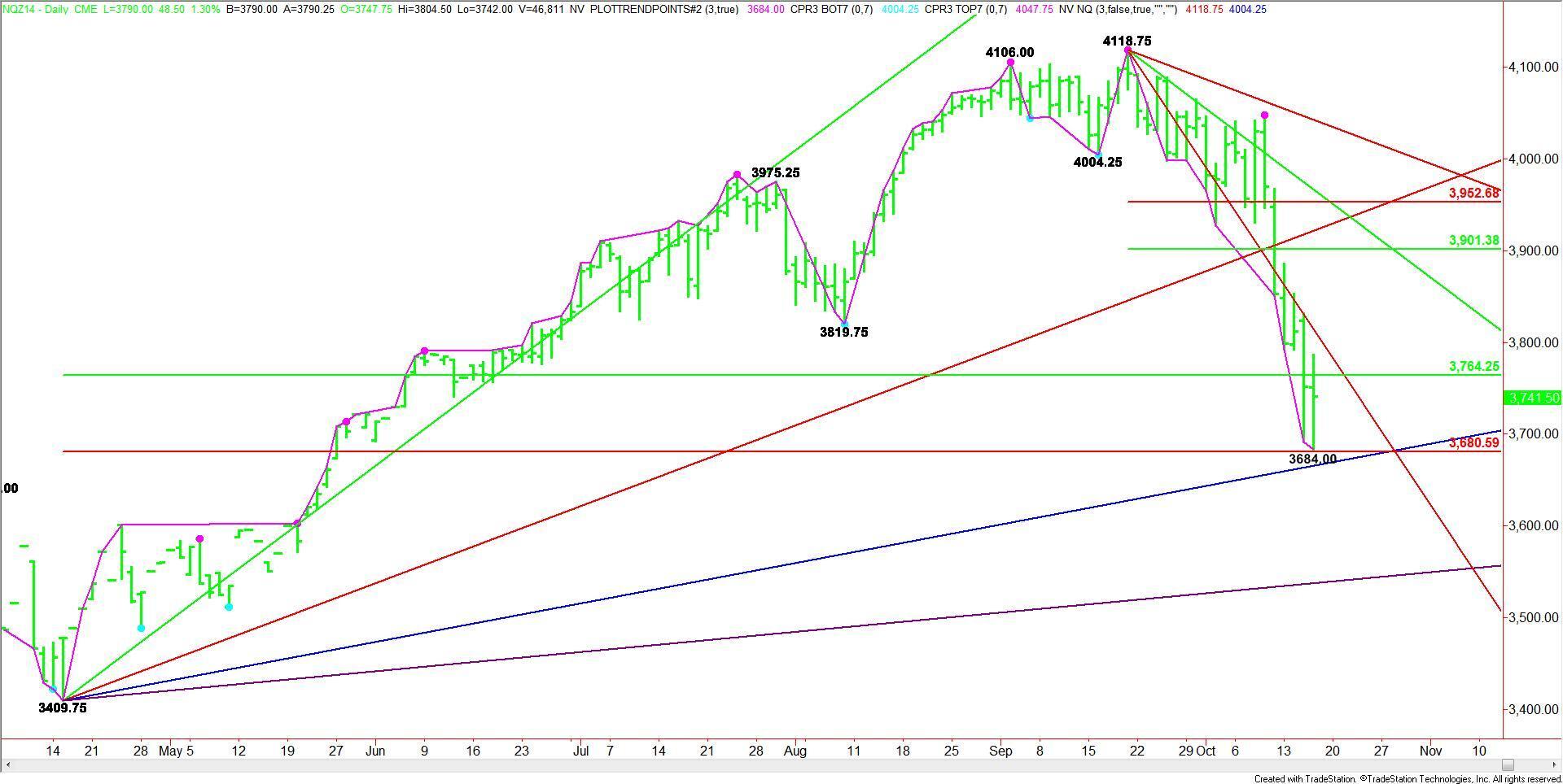 December E-mini NASDAQ-100 Index futures rebounded after reaching a low at 3684.00 on Thursday. This price was slightly above a major Fibonacci level at 3684.00 and a long-term uptrending angle at 3667.50. These two prices are support today.