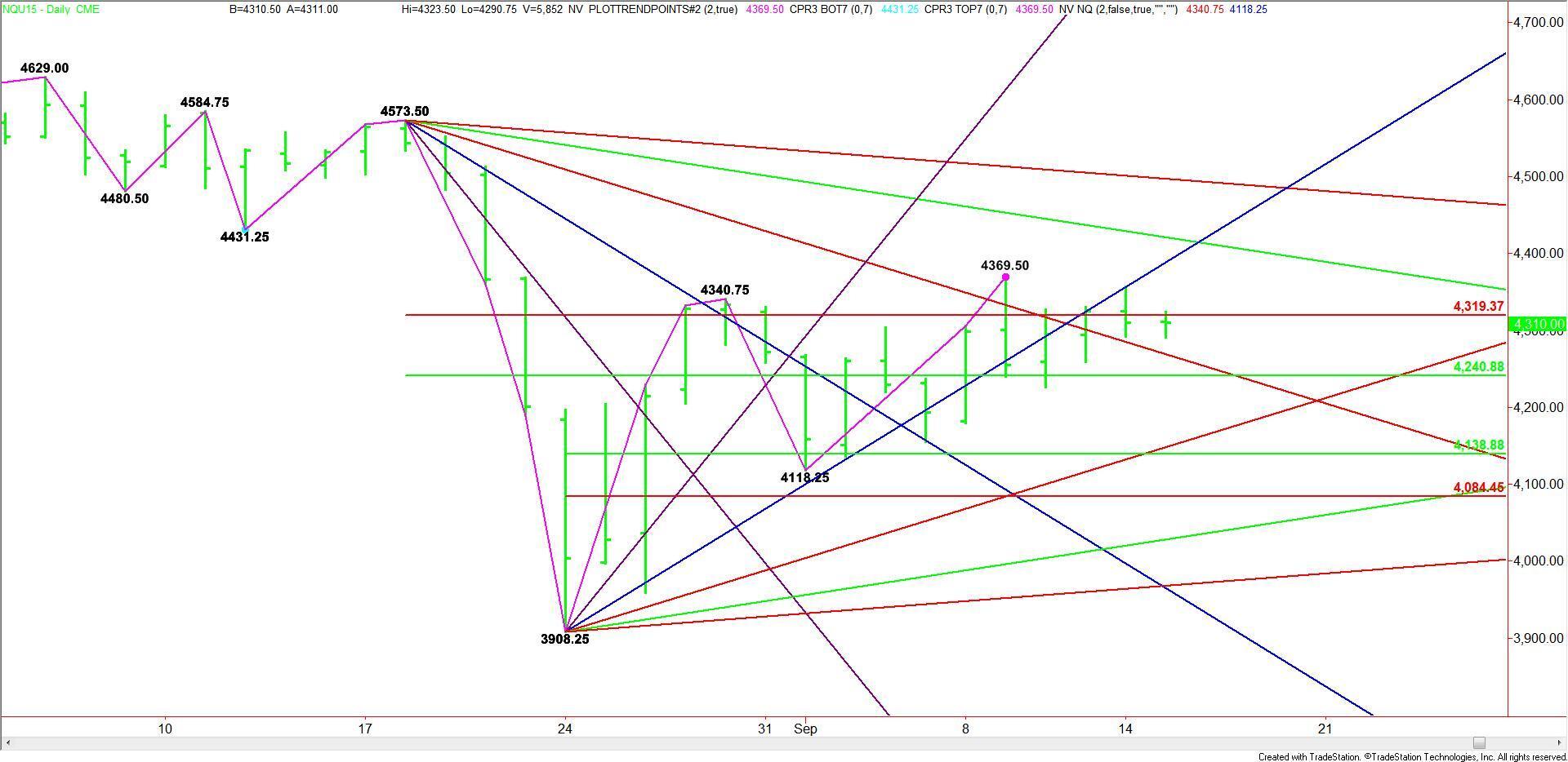 The main trend is up according to the daily swing chart. The main range is 4573.50 to 3908.25. The index is currently testing its retracement zone at 4240.75 to 4319.50.