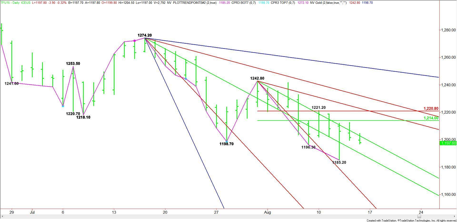 The only way this index will rally today and sustain the move is if the angle at 1202.80 is taken out with better than average volume. If buyers can sustain this move then the primary upside target becomes 1214.00.
