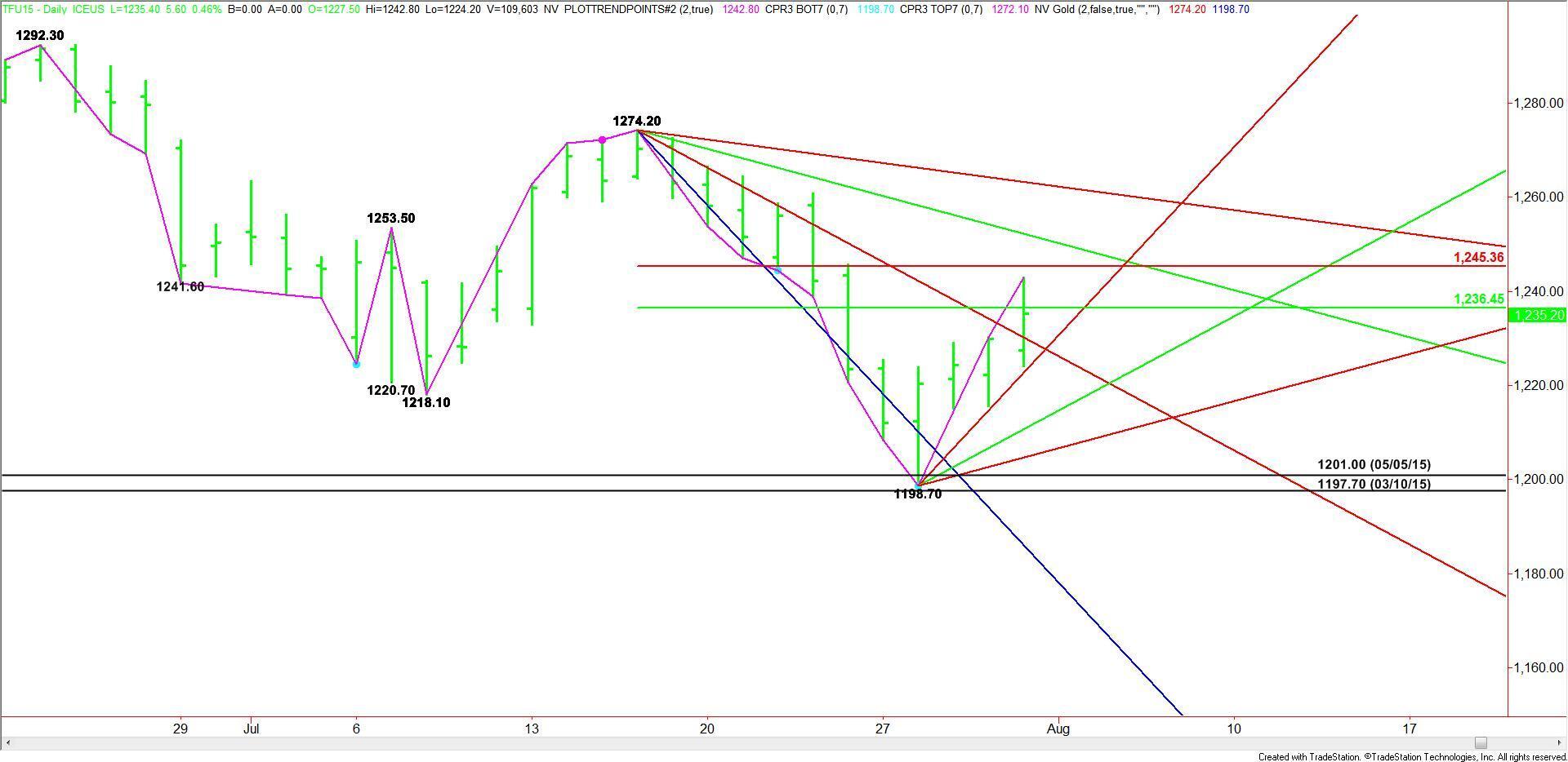 The main trend is down according to the daily swing chart. The main range is 1274.20 to 1198.70. Its retracement zone is 1236.50 to 1245.40. Since the trend is down, sellers are likely to come in to defend the trend inside this zone.