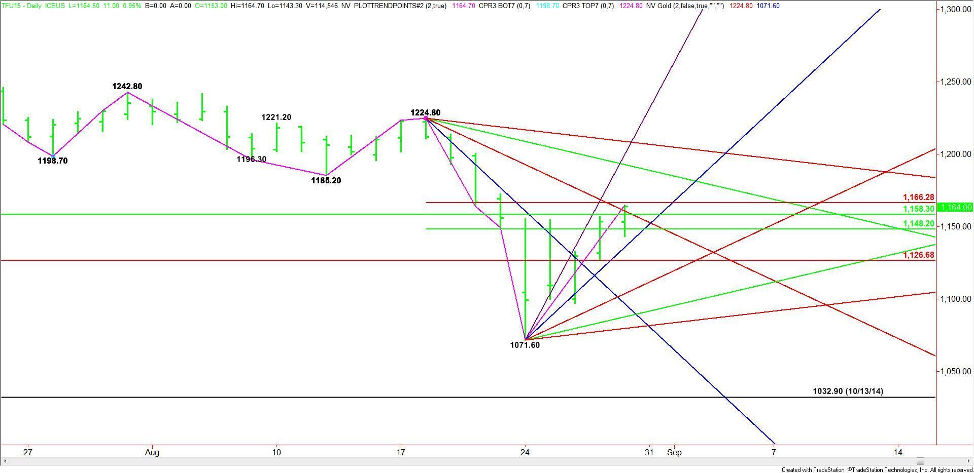 The main trend is down according to the daily swing chart, but momentum is pointing to the upside. The main range is 1224.80 to 1071.60. Its retracement zone at 1148.20 to 1166.30 is currently being tested along with a major 50% level at 1158.30. Trader reaction to this zone should determine the direction of the market today.