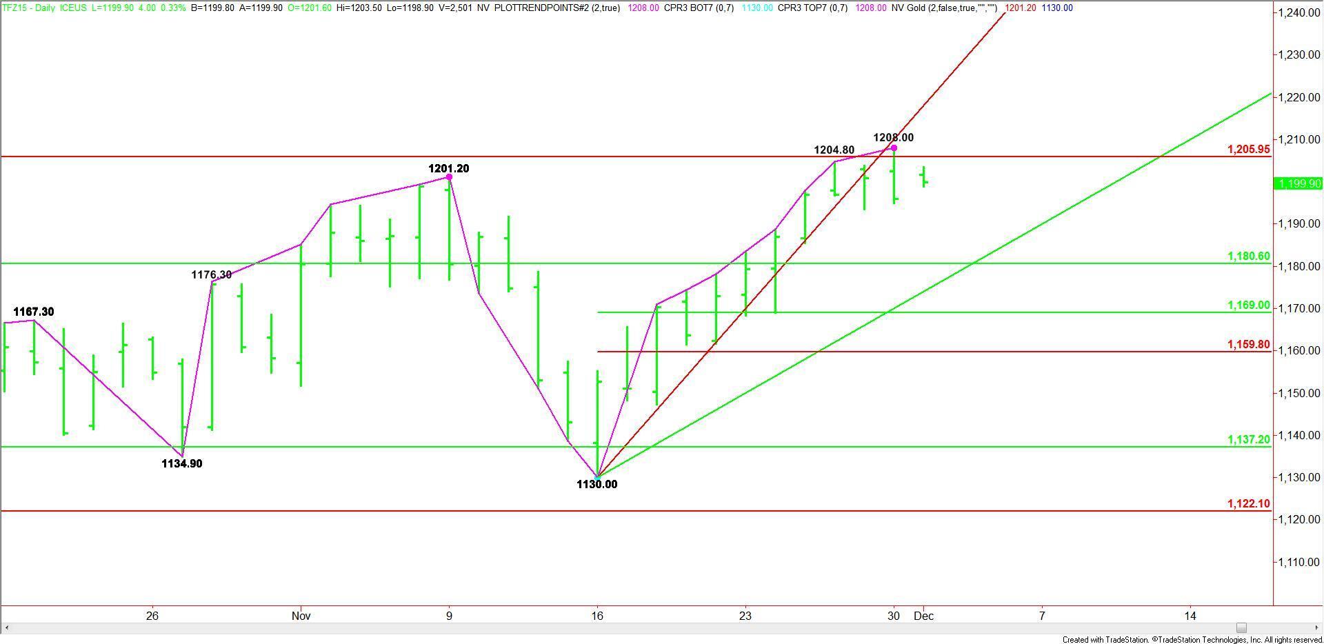 December E-mini Russell 2000 Index futures are trading slightly better shortly before the cash market opening. On Monday, the index formed a potentially