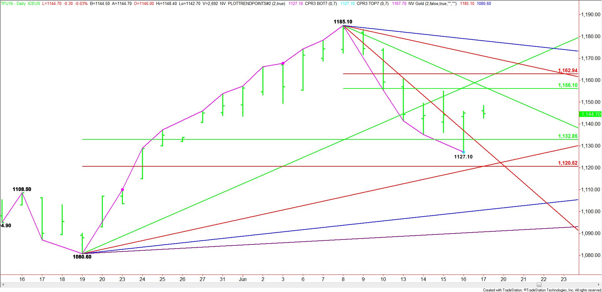 A sustained move over 1145.70 will indicate the presence of buyers. This could create enough upside momentum to challenge a resistance cluster at 1156.10 to 1157.10.