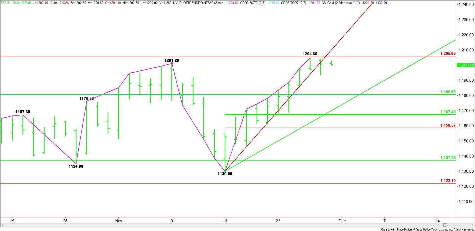 A sustained move over 1200.80 will also signal the presence of sellers. The first target is Friday’s low at 1193.50. This is a minor level, but it is also a trigger point for a steep break.