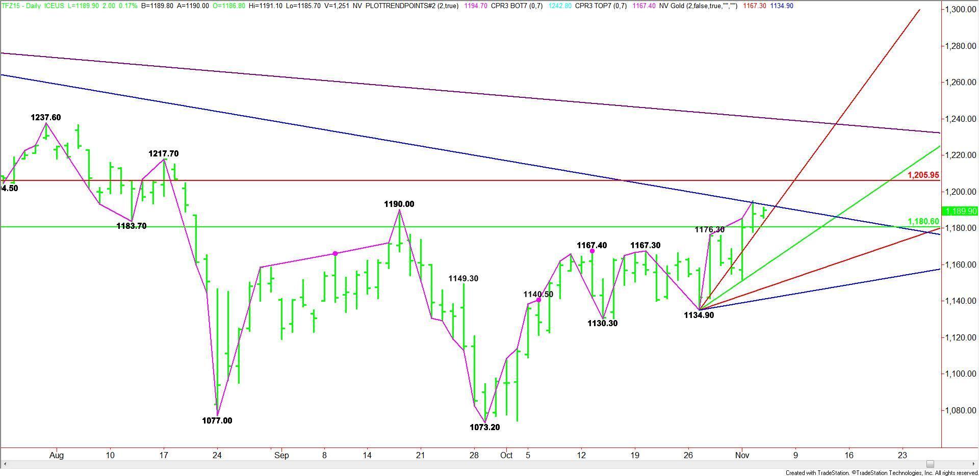 A sustained move over 1193.00 will indicate the presence of buyers. This could trigger a fast rally into the major Fibonacci level at 1206.00. This level is a possible trigger point for a huge breakout with the August 17 main top at 1217.70 the next major objective.