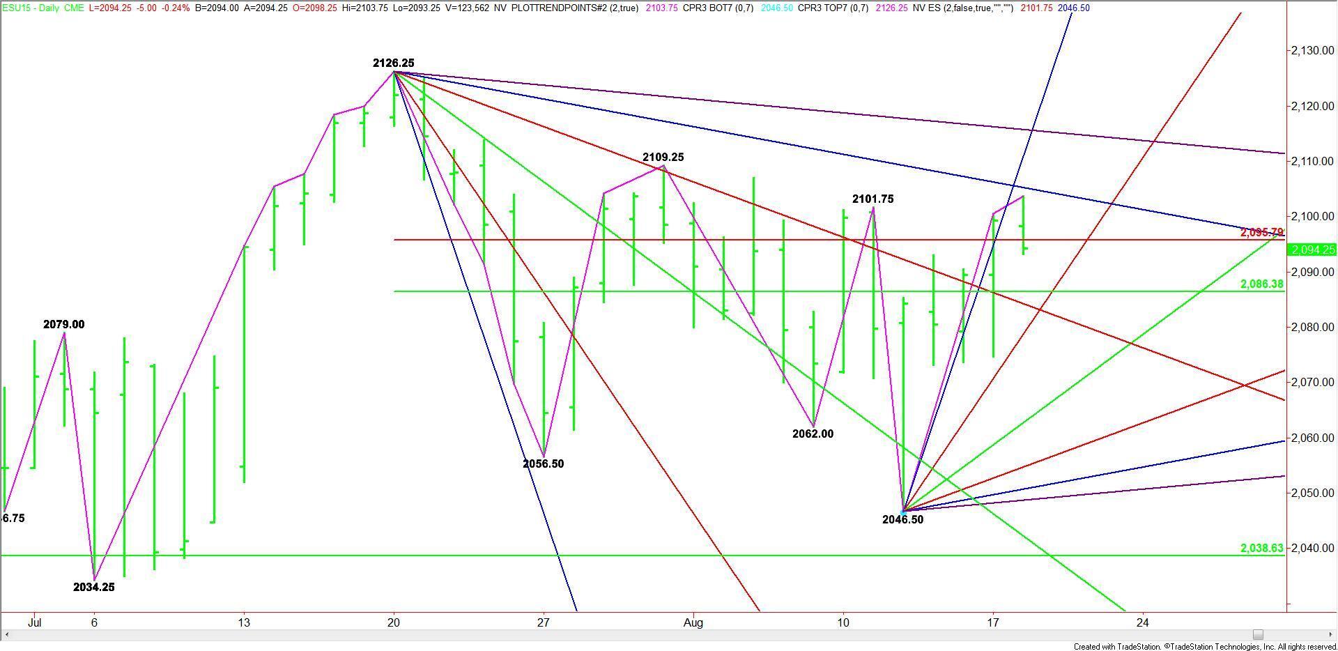 Currently, the index is trading on the weak side of a major Fibonacci level at 2095.75. Trader reaction to this level should determine the direction for the day.