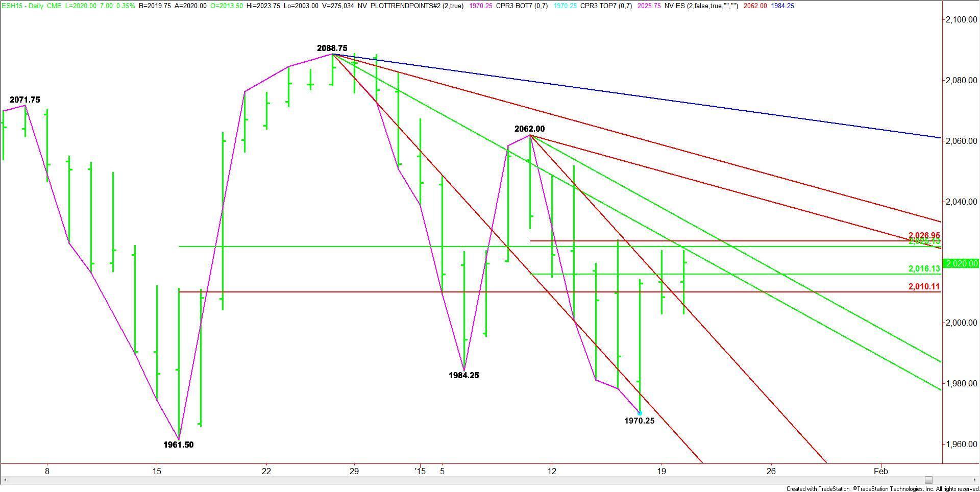 The short-term range on the daily chart is 2062.00 to 1970.25. Its retracement zone is 2016.25 to 2027.00. This zone is also controlling the short-term direction of the index, which means we could see choppy trading conditions as long as the index remains between 2010.00 and 2027.00.