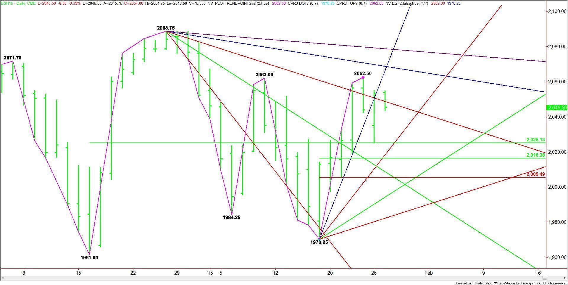 The key Gann angle to watch comes in at 2048.75. Trader reaction to this price should set the tone for the day. Holding above it could trigger a rally to 2066.25 to 2068.75.