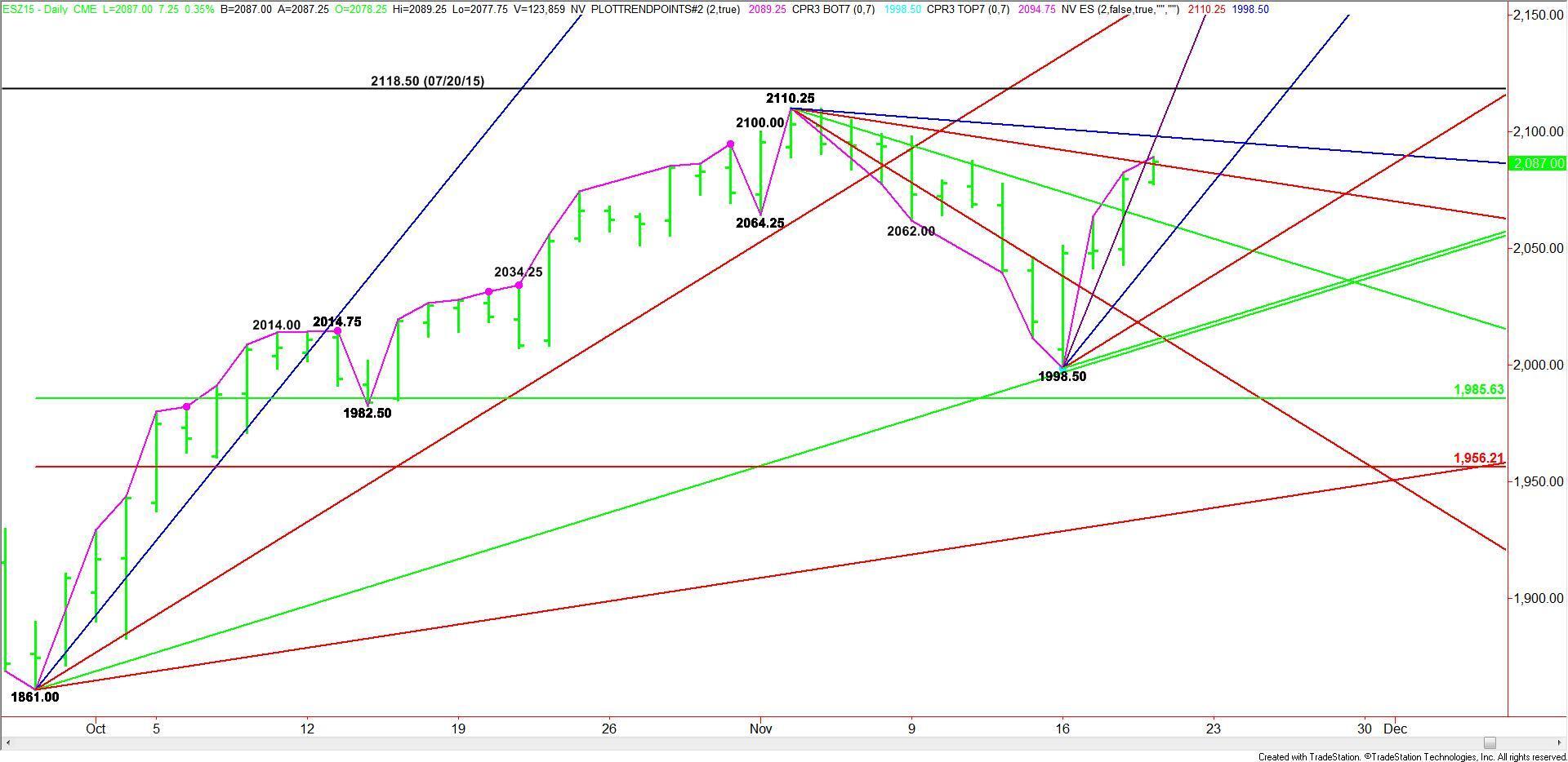 December E-mini S&P 500 Index futures are inching higher shortly before the cash market opening. Based on the current price at 2087.00, the key level
