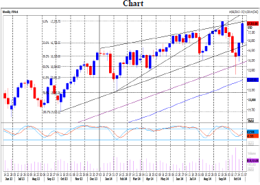Emini Dow Jones key to this week's direction is of course the all time high at 17365. A very sharp correction in mid October to mid September took 4