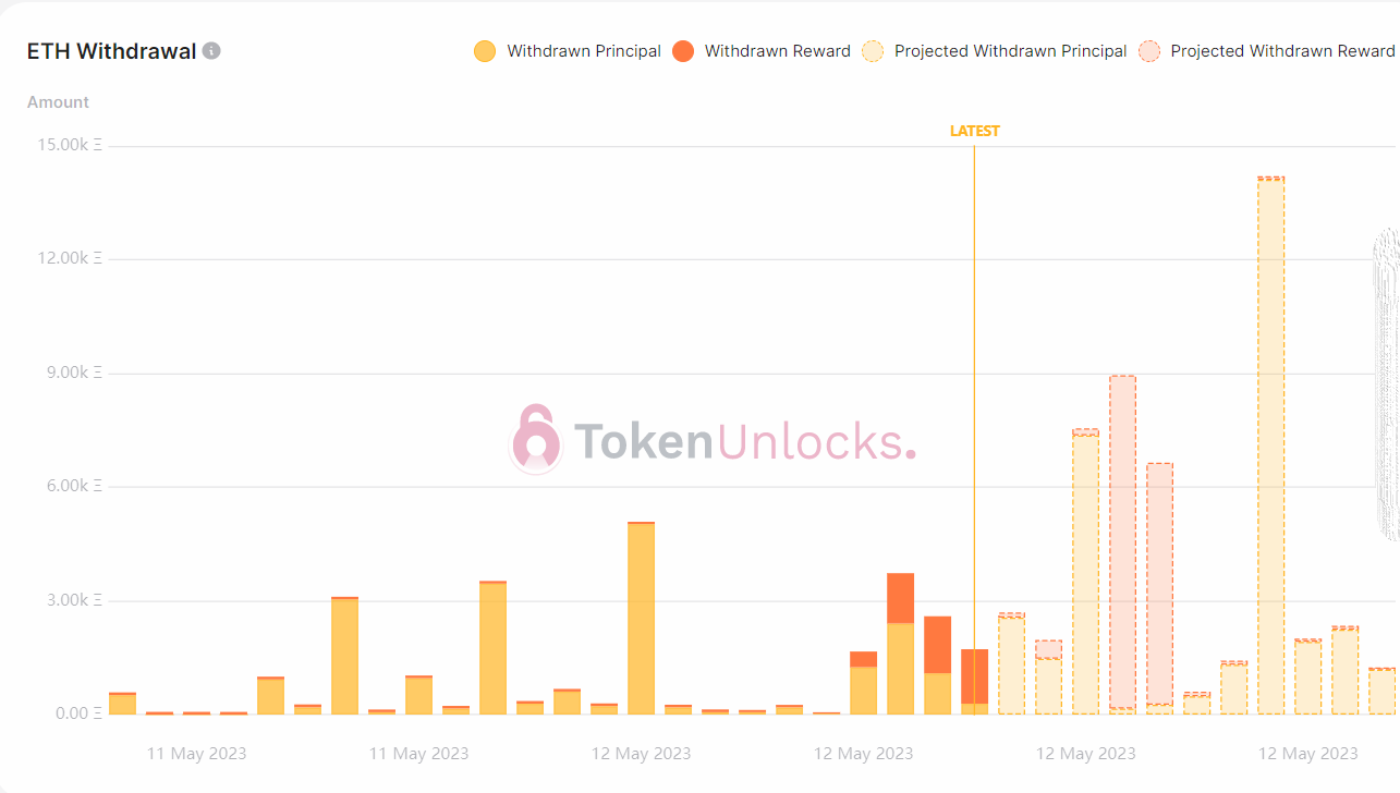 Overnight, the withdrawal profile was bullish. Principal withdrawals receded to normal levels. However, withdrawal projections for the morning session turned bearish, with principal ETH withdrawals expected to spike.