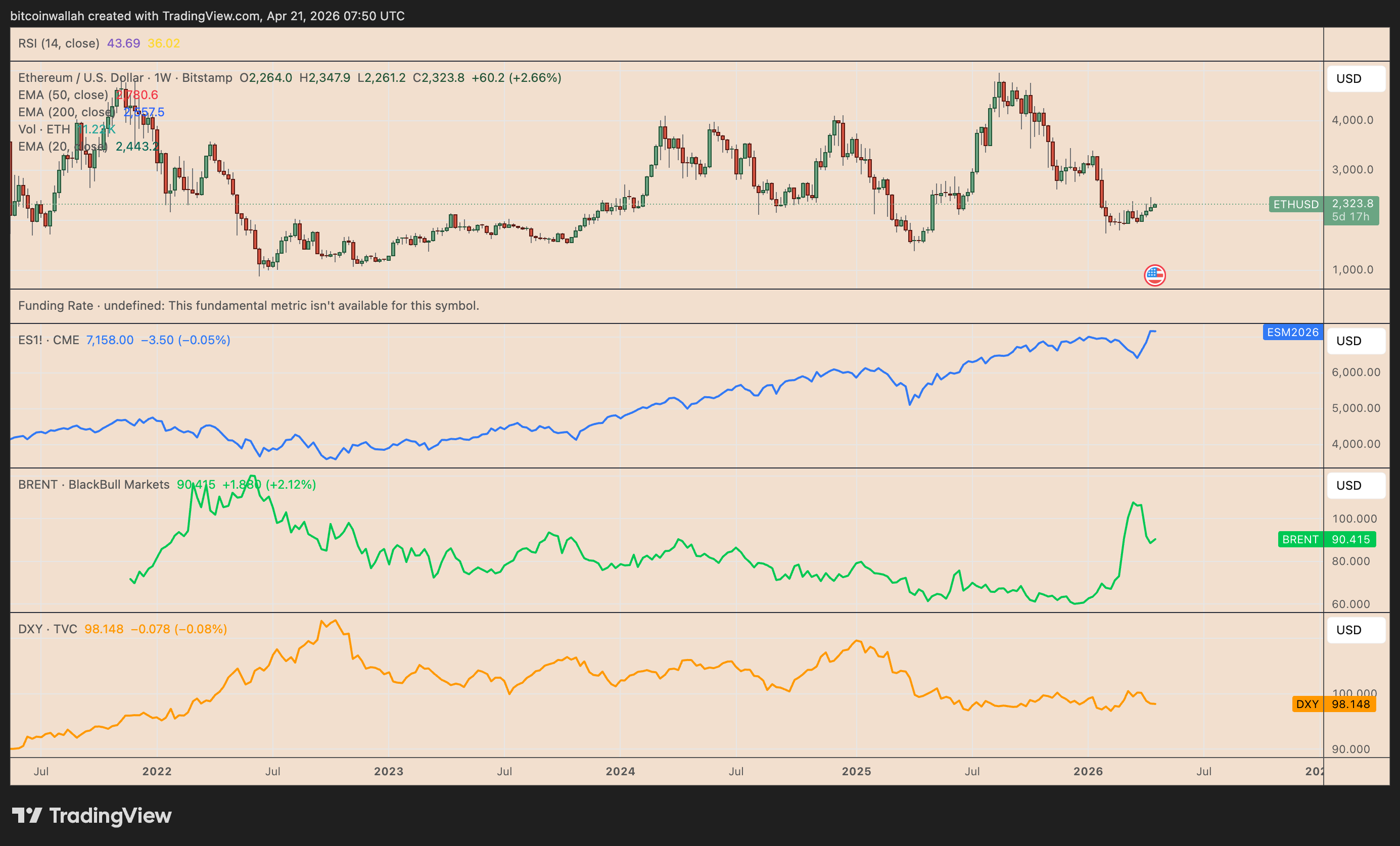 Ether has pushed higher for three straight weeks and is attempting a fourth, tracking a broader recovery in global risk sentiment. Markets have turned cautiously optimistic as the US and Iran prepare to resume peace talks, easing fears of a prolonged oil supply shock.