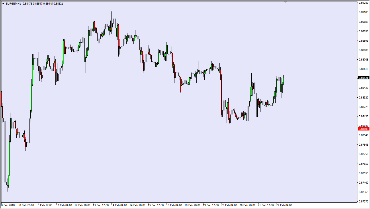 The EUR/GBP pair has gone back and forth during the trading session on Thursday, as the market has found a significant amount of support at the 0.88 level underneath. That is an area that has been important more than once, so it makes sense that we have seen a lot of buyers. At this point, the markets should continue to find plenty of reasons to go long, perhaps reaching towards the 0.89 level.