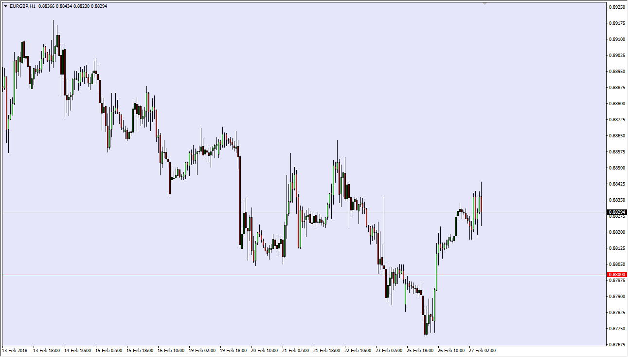 The EUR/GBP pair was choppy on Tuesday, although bullish. I believe that the market should then go to the 0.8850 level above, which is the next resistance barrier. I believe that the market will not only attract a lot of attention to that area but could bring in fresh buying if we can clear it to the upside. I believe that the 0.88 level underneath is going to be supportive, as it has been in the past. In fact, it was the bottom of the overall consolidation area for the last year, so it makes quite a bit of sense that it will attract noise. I believe that we will continue to see a lot of choppiness, mainly because of the headlines coming out of negotiation between the economies, and of course the occasional stupid thing coming out of a politician’s mouth. (The bane of my existence as a currency trader.)