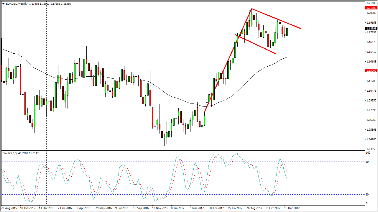 The EUR/USD pair rallied a bit during the trading session’s that made up the previous week, reaching towards the top of the bullish flag that we have been in. I remain bullish of this pair, and I think that 2018 is going to be very good for the EUR.