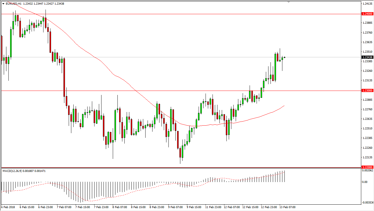 The EUR/USD pair has gone higher during the trading session on Tuesday, breaking above the 1.23 handle again. There is a certain amount of bullish pressure underneath, and I think that were going to go looking towards that level rather soon, and I think that we will continue to see the US dollar soften in general.