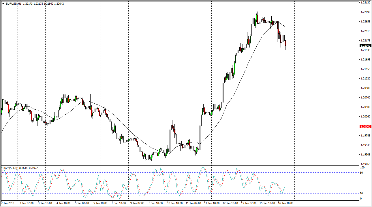 The EUR/USD pair dropped a bit during the trading session on Tuesday, as the Americans came back from the Martin Luther King Jr. holiday. The 1.22 level is offering a short-term support, but if we break down below there, I think will go looking towards even more significant support. In other words, the buyers seem to be in control longer term.