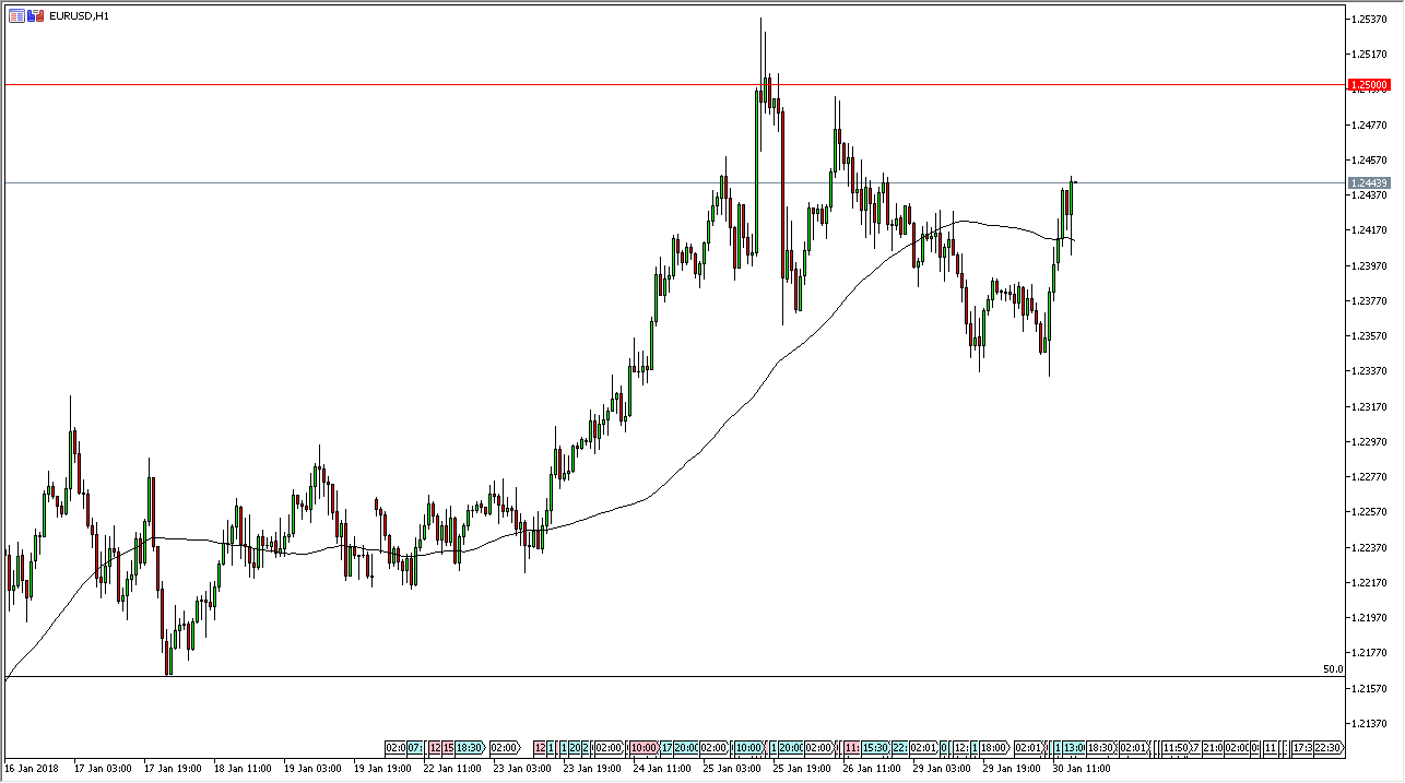 The EUR/USD pair has rallied significantly during the trading session on Tuesday, reaching towards the 1.2450 level as I record this video. The 1.25 level above is massive resistance, based upon not only structural selling, but the large, round, psychologically significant number. However, the recent pullback has only offered a buying opportunity, and it looks as if the pair should continue to rally rather significantly. If we can clear to a fresh, new high, the market should continue to go much higher, and based upon longer-term charts I believe this will eventually be the case.