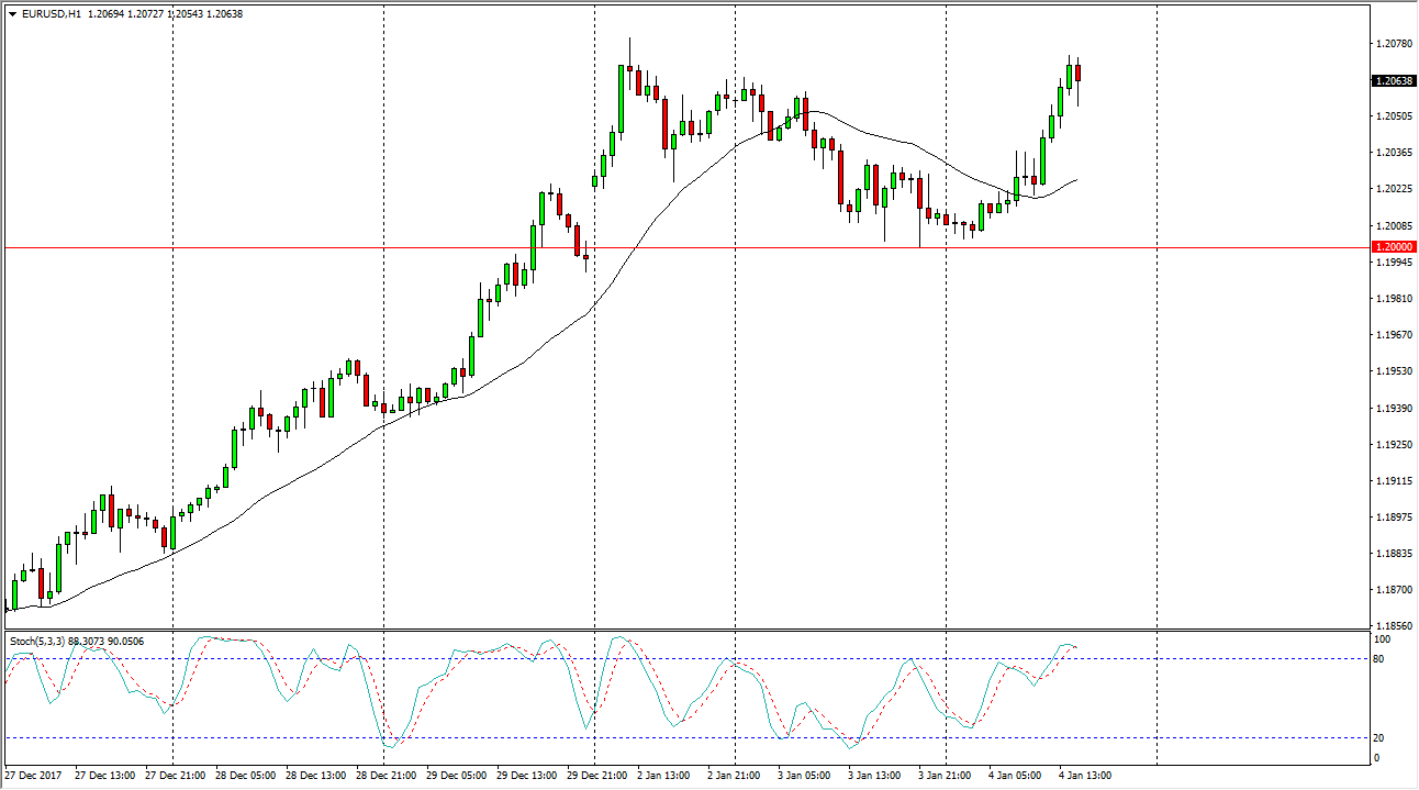 The EUR/USD pair was strong during the trading session on Thursday, as the ADP employment numbers came out better than anticipated, giving us a bit of a “risk on” attitude. The 1.20 level underneath offers a significant amount of support based upon the psychologically significant number.