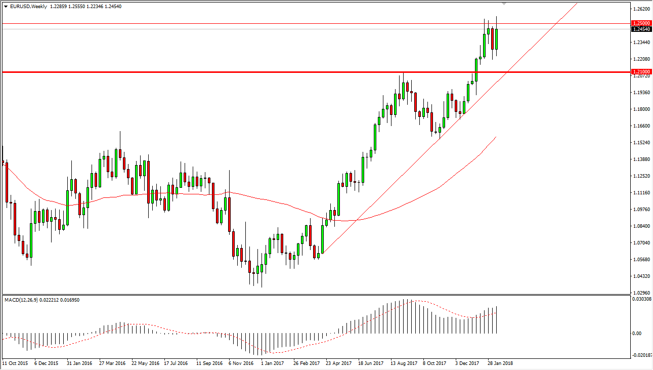 The EUR/USD pair has rally during the week, breaking above the 1.25 level to make a fresh, new high. However, we have pulled back significantly so it makes sense that we may struggle a bit in the near term. I think we are trying to build up the necessary momentum to finally break out, perhaps reaching towards the 1.32 level based upon my longer-term charts and the recent breakout of a bullish flag.