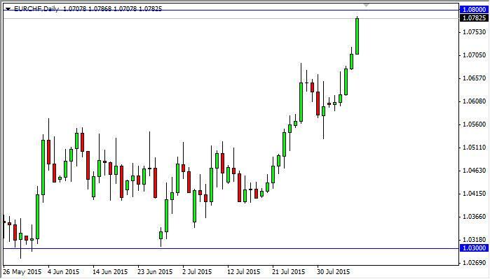 The EUR/CHF pair broke higher during the course of the session on Friday, testing the 1.08 region. This is an area that is significant resistance, but at