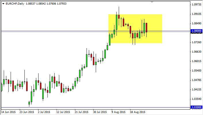 The EUR/CHF pair fell during the course of the session on Wednesday, but continues to bounce around overall in the consolidation area that we have been stuck in for several sessions out. After all, the 1.08 level looks to be a bit of a magnet for price, and as long as that’s the case, we are simply on the sidelines. We will continue to watch this pair here at FX Empire though, and we do admit that we have an upward bias. With that being the case, we will wait to see a fairly impulsive candle were an excellent supportive candle in order to start going long.