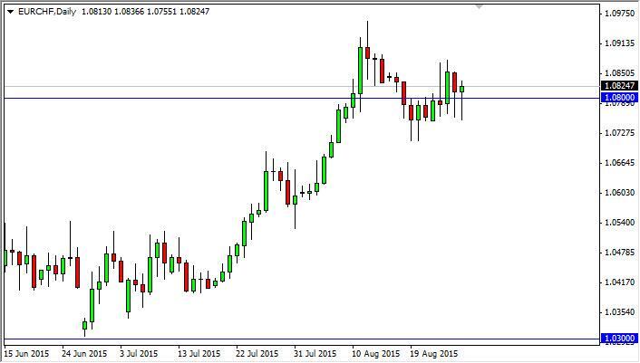 The EUR/CHF pair broke down a little bit during the session on Thursday, but found enough support near the 1.08 level to turn things back around and form