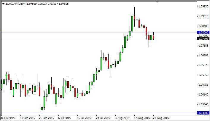 EUR/CHF pair fell slightly during the course of the day on Friday, as the 1.08 level offered too much resistance to continue going higher. However, we had