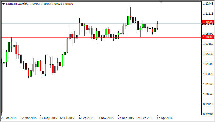 The EUR/CHF pair broke higher during the course of the week, breaking above the 1.10 level at one point in time. Having said that, if we can break above