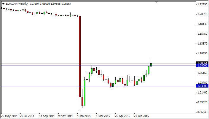 The EUR/CHF pair initially broke above significant resistance during the course of the week, but it turned back around to form a shooting star.