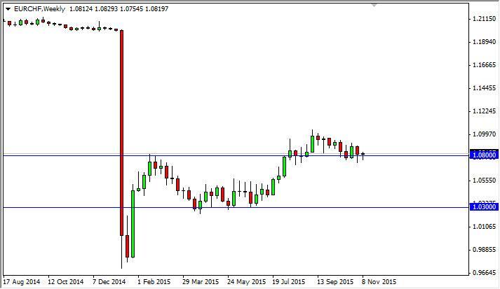 The EUR/CHF pair fell initially during the course of the week, but found enough support at the 1.08 level to turn things back around and form a hammer.