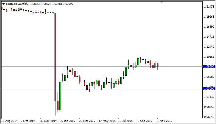 The EUR/CHF pair fell during the course of the week, breaking below the 1.08 level. Ultimately, we found enough buying pressure underneath to turn things