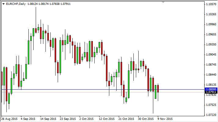 The EUR/CHF pair initially fell during the course of the session on Monday, but continues to find support just below the 1.08 level to turn things back