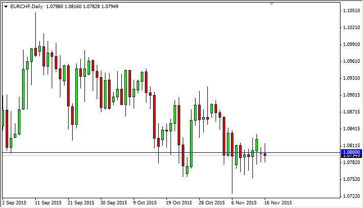 The EUR/CHF pair went back and forth during the course of the day on Monday, as we continue to hover around the 1.08 handle. With this, it’s very likely