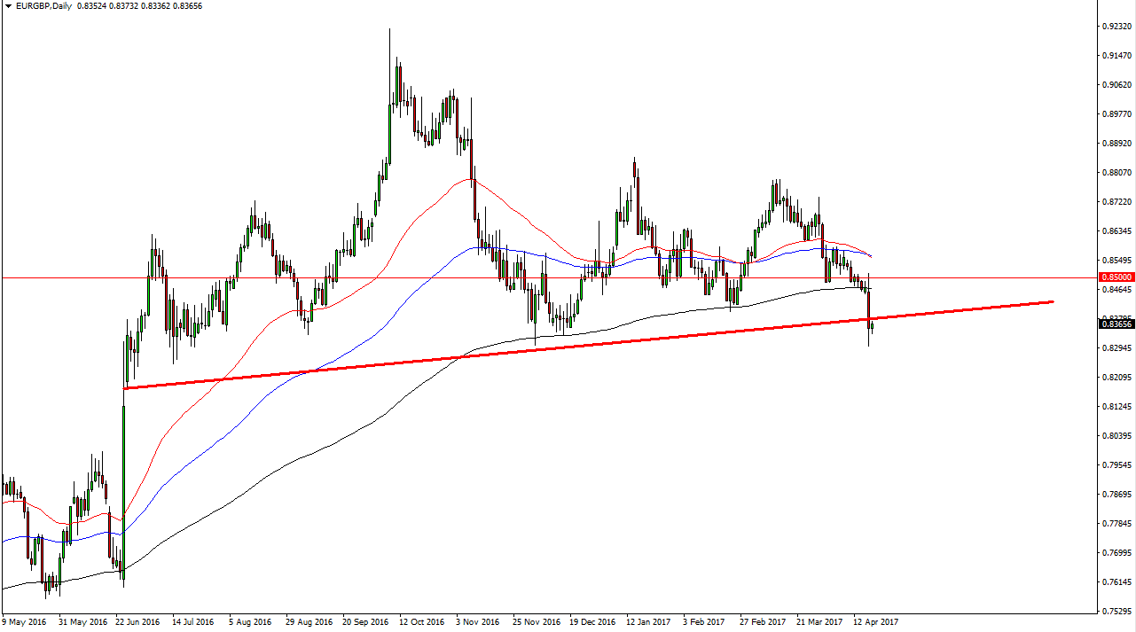 The EUR/GBP pair rose slightly during the day on Wednesday, testing the previous neckline of what I see as an inverse head and shoulders. Because of this, I’m looking for selling opportunity but I need to see some type of exhaustive candle or a breakdown below the bottom of the range for the Wednesday session to start shorting again. With this, I believe that this pair goes much lower, but we may need to take a bit of a breather in the meantime after the massive move in the British pound overall during Tuesday’s trading.