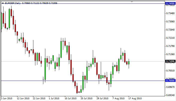 The EUR/GBP pair initially fell during the course of the day on Monday, but found enough support to turn things back around and form a hammer. The hammer of course is a bullish sign so therefore we have an interest in going long on a break of the top of the candle. However, the market should probably find quite a bit of resistance at the 0.72 level as well. Ultimately, we think this market will be very volatile and difficult to deal with. Because of this, we feel this market is probably one of the more difficult that we follow.