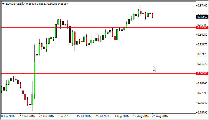 The EUR/GBP pair fell during the day on Monday, as we continue to pull back from the recent breakout. Ultimately, the 0.85 level below should be a bit of